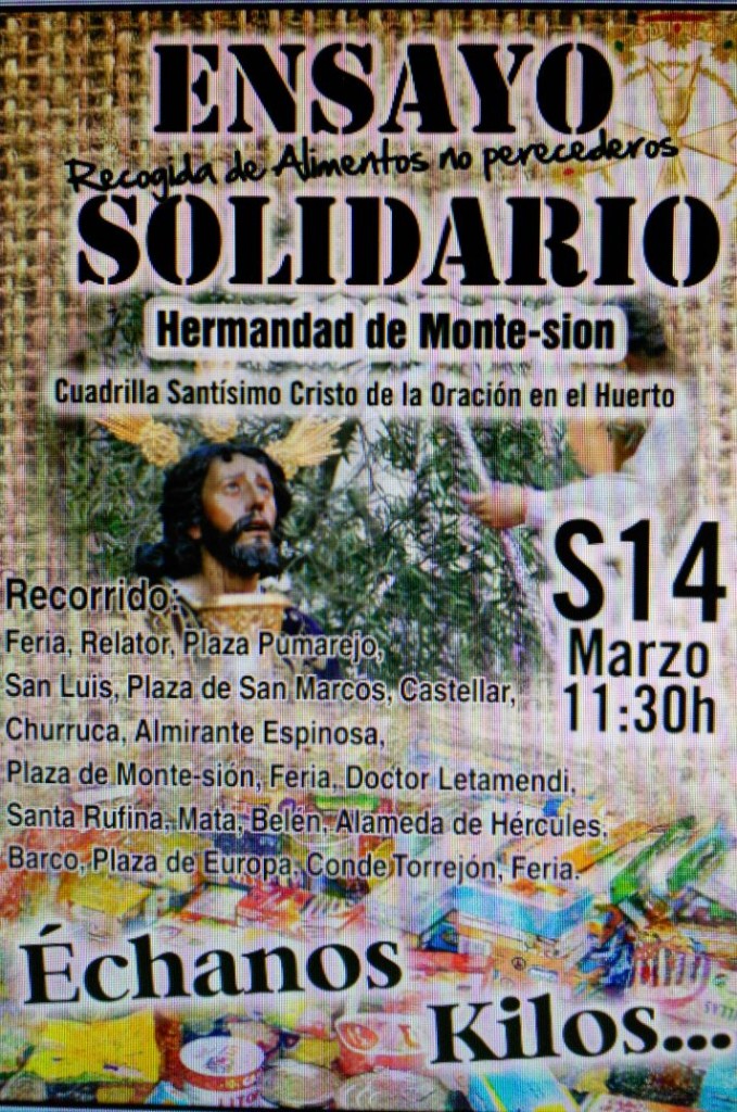 El próximo sábado, 14 de MARZO, la cuadrilla del Señor de la Oración realizará un ENSAYO SOLIDARIO dónde recogerán comida